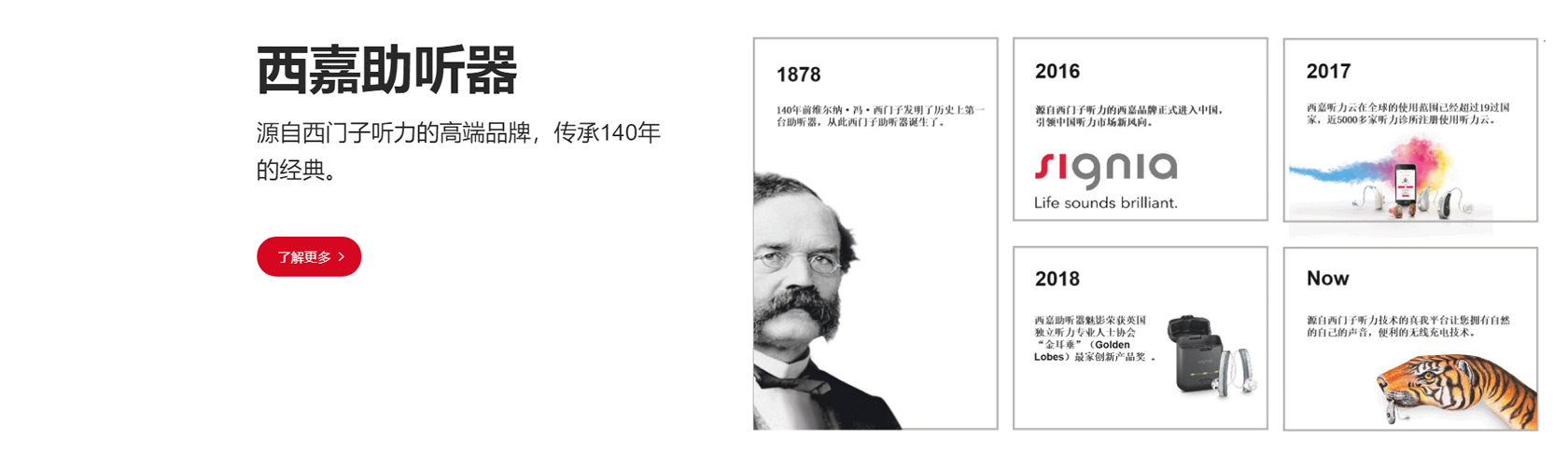 金華市康全醫(yī)療器械有限公司專業(yè)經營西嘉助聽器,西嘉助聽器源自西門子聽力,傳承140多年的經驗技術,在聽力研究、助聽器研發(fā)和生產等領域享有盛譽。其足跡遍布全球100多個國家和地區(qū),不斷創(chuàng)新,竭盡推動聽力行業(yè)發(fā)展。西嘉助聽器繼承了西門子聽力逾百年的科技精髓,擁有強大的研發(fā)創(chuàng)新能力。我們將利用這些先進的產品技術為金華地區(qū)聽力損失患者提供專屬個人的聽力解決方案,為您解決聽力上的煩惱,重回有聲的精彩聽世界。